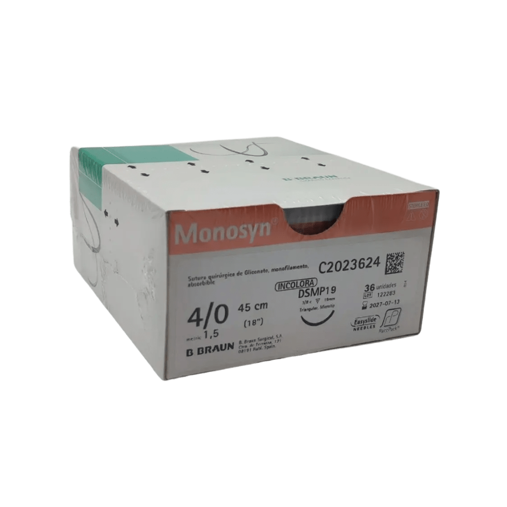 Sutura Monosyn Undyed – Seguridad, precisión y rápida cicatrización La Sutura Monosyn Undyed es un material de sutura absorbible monofilamento diseñado para ofrecer una aproximación segura y controlada de los tejidos durante la fase crítica de cicatrización. Gracias a su composición y estructura, garantiza un paso suave y atraumático a través de los tejidos, facilitando el trabajo del cirujano y reduciendo el trauma local. Su diseño evita la migración o colonización bacteriana, ofreciendo mayor seguridad frente a infecciones. La sutura Monosyn mantiene la correcta aproximación de los tejidos durante aproximadamente 14 días, permitiendo una cicatrización eficaz. Además, presenta una mínima reacción tisular, lo que favorece un mejor proceso de recuperación. Disponible en un amplio rango de combinaciones hilo-agujas, se adapta a distintas especialidades quirúrgicas y procedimientos. Características destacadas: • Sutura absorbible monofilamento • Excelente manejabilidad y control durante la sutura • Paso atraumático a través de los tejidos • Evita migración y colonización bacteriana • Mantiene la aproximación tisular durante los primeros 14 días críticos • Mínima reacción tisular • Amplia variedad de combinaciones hilo-agujas según la indicación .