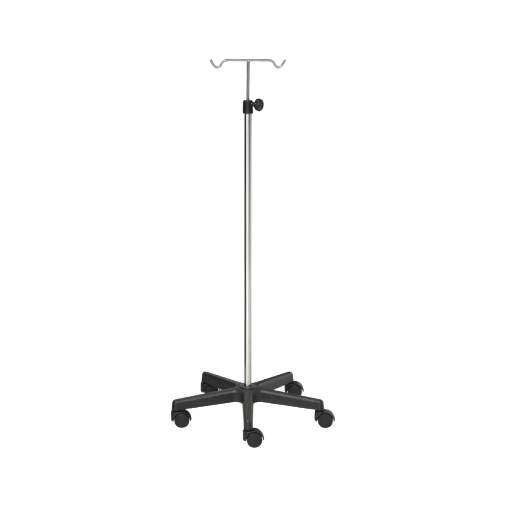 Portasueros con 2 Colgadores – Estabilidad y movilidad para entornos clínicos El portasueros con dos colgadores está diseñado para garantizar un soporte seguro y práctico en la administración de sueros y medicación intravenosa. Su estructura de acero inoxidable proporciona durabilidad y resistencia a la corrosión, ideal para uso hospitalario intensivo. La base rodable de PVC negro, de 5 patas con un diámetro de 560 mm, asegura estabilidad durante el desplazamiento. Equipado con cinco ruedas pivotantes que facilitan la movilidad sin esfuerzo en cualquier dirección. La altura se regula manualmente mediante un volante de fijación, permitiendo ajustar el nivel de las bolsas de suero según las necesidades del paciente. Características destacadas: • Soporte de acero inoxidable con 2 ganchos • Base de PVC negro o gris de 5 patas (Ø560 mm) • Altura regulable mediante volante de fijación • Cinco ruedas pivotantes para desplazamiento fácil