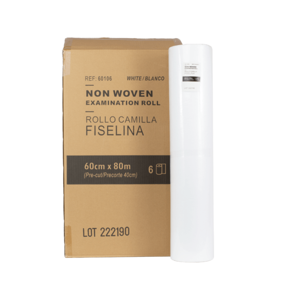 Papel camilla desechable de polipropileno Fabricado en 100 % polipropileno con mandril de cartón. Higiénico, práctico y resistente, ideal para uso profesional.