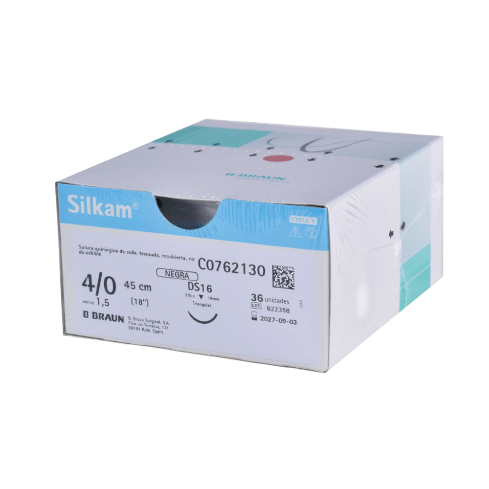 Sutura Silkam – Máxima manejabilidad y seguridad en suturas no absorbibles La Sutura Silkam es un material de sutura natural, no absorbible, fabricado a partir de la filástica proteica del capullo del gusano de seda (Bombyx morii), con coloración negra para mejor visibilidad durante el procedimiento. Su estructura multifilamento trenzada e impregnada proporciona una excelente manejabilidad, permitiendo un paso suave a través de los tejidos y una gran seguridad en el anudado. Indicada en una amplia gama de procedimientos quirúrgicos, la sutura Silkam es ideal para el cierre de planos quirúrgicos y ligaduras en especialidades como cirugía general, neurocirugía, cirugía plástica, oftalmología, cirugía oral y ligaduras vasculares, donde se requiere un material no absorbible. Indicaciones: • Cirugía general • Plano cutáneo • Neurocirugía • Cirugía plástica • Cirugía oral • Oftalmología • Ligaduras Ventajas destacadas: • Excelente manejabilidad durante la sutura • Gran seguridad y firmeza en el nudo • Sutura natural de seda no absorbible • Multifilamento trenzado impregnado para un paso suave y controlado • Alta visibilidad gracias a su color negro • Uso profesional en múltiples especialidades quirúrgicas .