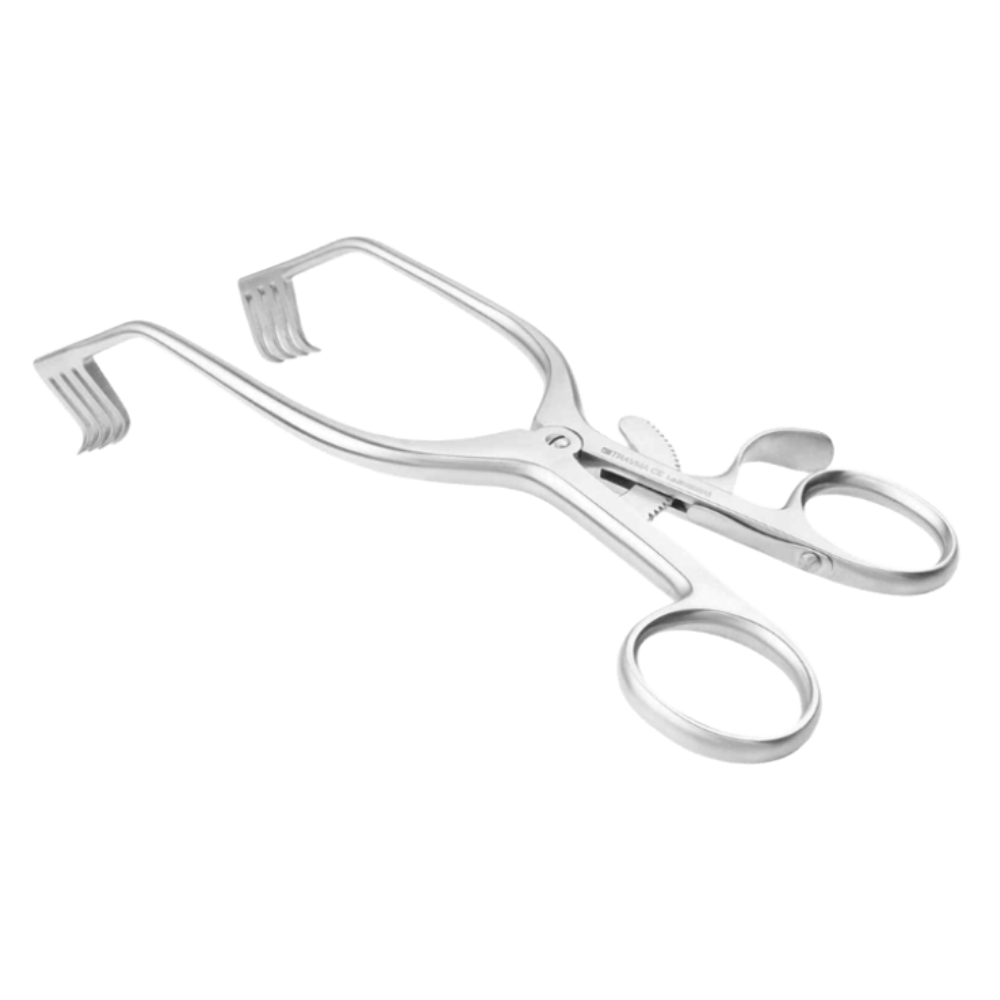 Separador WEITLANER. Separador Weitlaner metálico con sistema de bloqueo, ideal para mantener tejidos abiertos durante cirugías traumatológicas o abdominales.