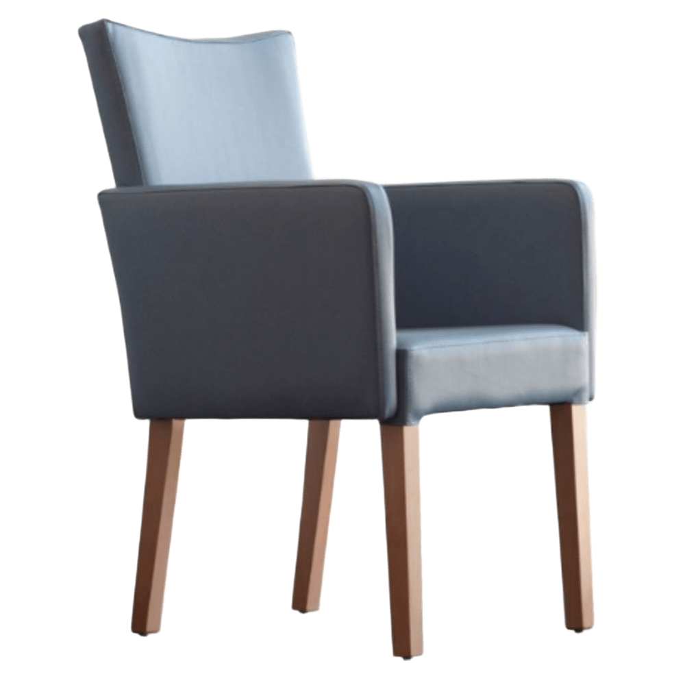 SILLÓN BAJO/MEDIO, PATAS VISTA MADERA DE HAYA, BRAZOS DE MADERA, ASIENTO Y RESPALDO TAPIZADO TEJIDO VINILICO SERIE KALA - UNIDAD Sillón bajo/medio con patas y brazos de madera de haya, tapizado en tejido vinílico Serie Kala. Resistente, confortable y fácil de limpiar, ideal para entornos sanitarios y asistenciales.