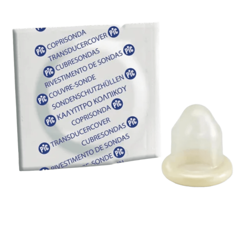 Cubre Sonda Lumbar-Abdominal Funda flexible de látex natural, cilíndrica y de superficie lisa, diseñada para cubrir sondas lumbares y abdominales con extremo abierto en forma tórica.