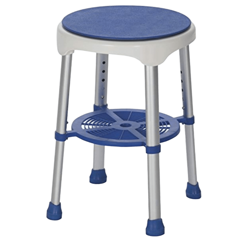 TABURETE BAÑO GIRATORIO - UNIDAD Taburete de baño giratorio, seguro y ergonómico. Facilita el aseo diario, ofreciendo comodidad y estabilidad a personas con movilidad reducida.