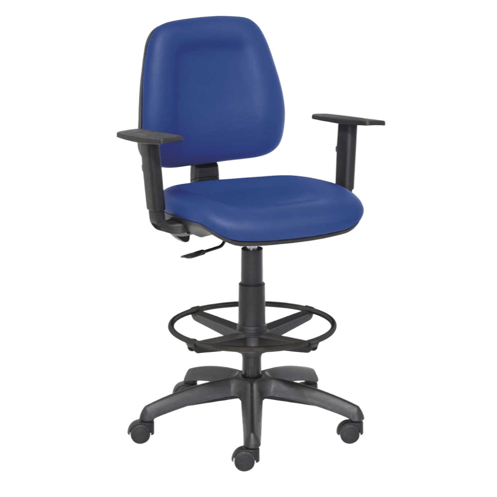 Este taburete giratorio alto está diseñado para ofrecer comodidad, ergonomía y movilidad en clínicas, consultas médicas, laboratorios y otros espacios sanitarios. Su asiento tapizado en acabado negro resistente y fácil de limpiar proporciona un soporte cómodo durante largas jornadas de trabajo. El sistema de regulación de altura a gas permite ajustar el taburete de forma suave y precisa, adaptándolo a diferentes puestos o necesidades clínicas. Incluye un respaldo regulable, proporcionando un apoyo lumbar adecuado que favorece la postura y reduce la fatiga. El reposapiés integrado mejora la ergonomía y permite mantener una posición más cómoda en trabajos prolongados. Su peana de aluminio con 5 ruedas garantiza una excelente estabilidad y una movilidad fluida, evitando vuelcos y facilitando el desplazamiento por el área de trabajo. Un taburete profesional, resistente y funcional, ideal para profesionales sanitarios que buscan comodidad y rendimiento en su día a día. Características principales Asiento: Tapizado en color negro, resistente y fácil de limpiar. Altura regulable: Sistema de elevación a gas para ajuste rápido y suave. Respaldo: Regulable para mayor ergonomía y confort lumbar. Reposapiés: Integrado para mejorar la postura durante el uso prolongado. Movilidad: Base con 5 ruedas de desplazamiento suave. Peana: Fabricada en aluminio, ligera y altamente estable. Giro: Asiento giratorio para mayor libertad de movimiento. Uso recomendado: Consultorios, clínicas, laboratorios y entornos sanitarios. Presentación: Unidad.