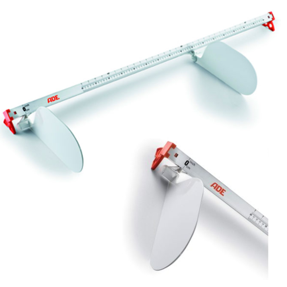 Tallímetro Pediátrico ADE – Precisión y estabilidad en medición infantil Tallímetro de aluminio anodizado para bebés, con lengüetas plegables y base triangular estable. Medición precisa y cómoda en consultas pediátricas y controles de crecimiento.