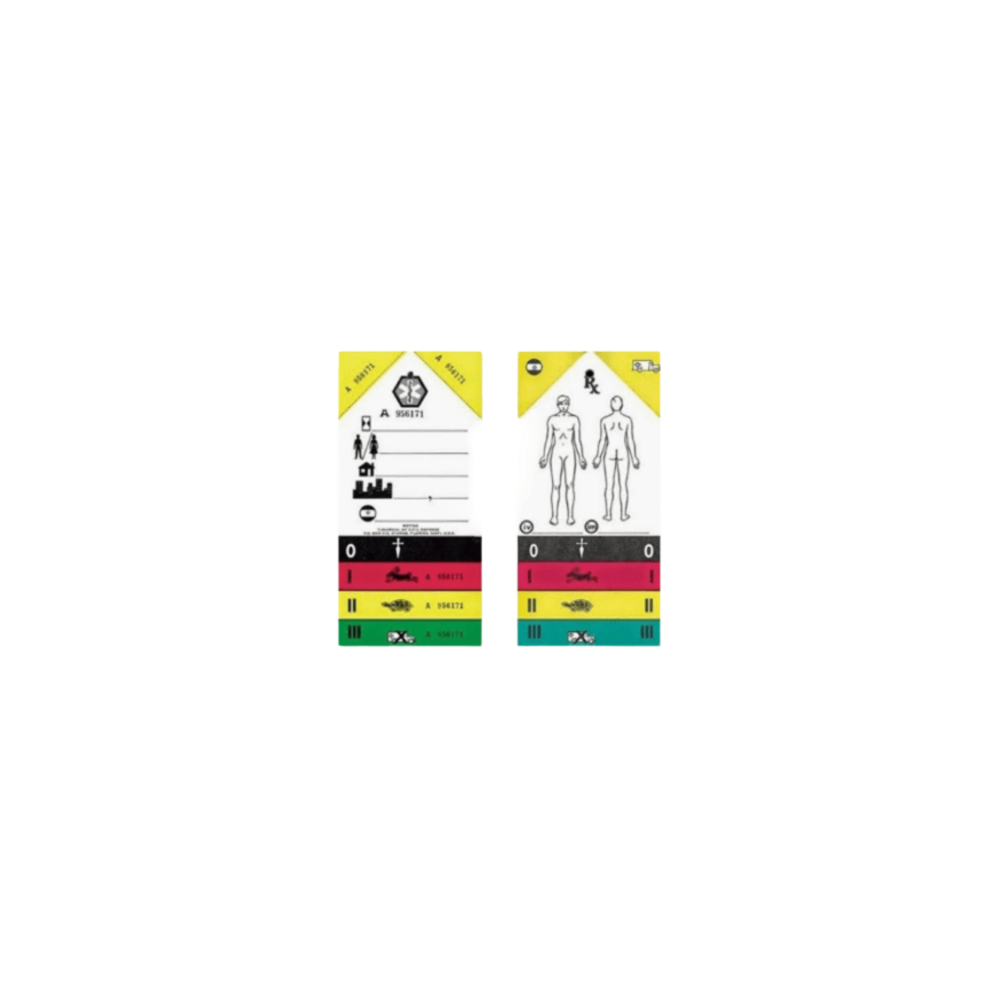 La tarjeta de triage prehospitalario es una herramienta esencial para la gestión rápida y eficiente de emergencias con múltiples víctimas, permitiendo priorizar la atención según la gravedad del paciente: Referencia: RES0010002 Función: Sistema de clasificación y reconocimiento de la prioridad de atención de un paciente en incidentes con múltiples víctimas. Indicador de gravedad: Uso de tarjetas de colores para reflejar la severidad del paciente tras evaluación inicial. Niveles de prioridad: 4 niveles codificados por colores: Negro: paciente sin posibilidad de recuperación inmediata. Rojo: atención inmediata requerida. Amarillo: atención diferida. Verde: atención mínima o retrasable. Diagrama del cuerpo humano: Incluye esquema para indicar las zonas lesionadas y facilitar la comunicación del estado del paciente. Aplicación: Ideal para equipos de emergencias, bomberos, personal sanitario y situaciones de desastre con múltiples heridos. Esta tarjeta permite una clasificación rápida y visual, facilitando la toma de decisiones y optimizando los recursos médicos en situaciones críticas.