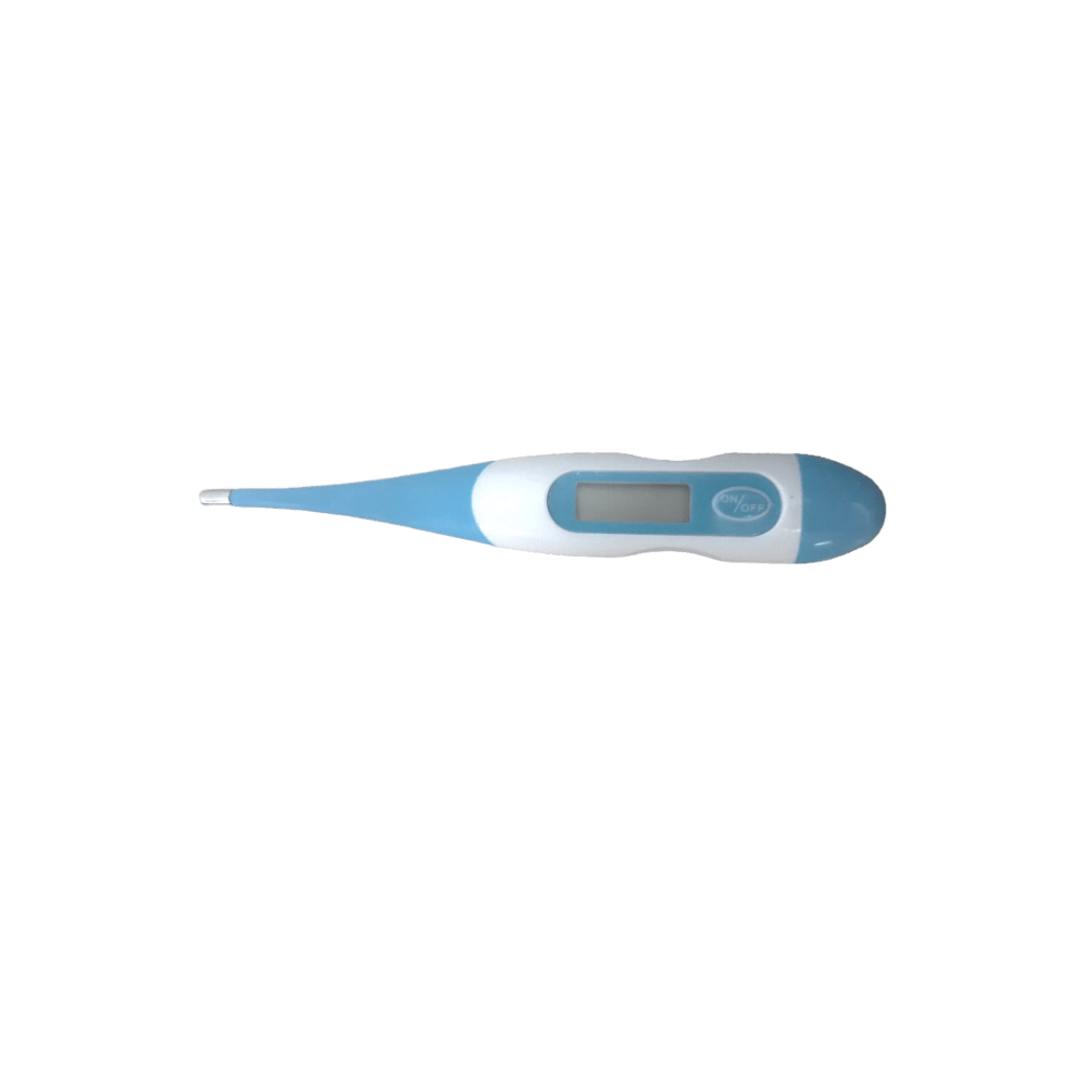 Termómetro flexible digital UNIDIX – Caja de 10 unidades. Termómetro clínico digital con punta flexible, resistente al agua, para mediciones oral, rectal o axilar. Cuenta con lectura rápida, memoria, alarma acústica y viene con funda protectora y batería.