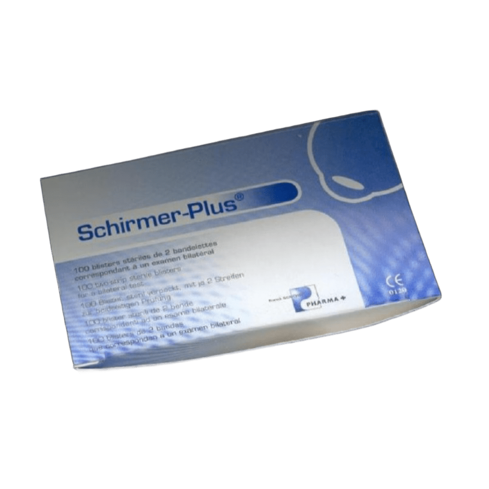 Test de Schirmer Plus – Examen de Lagrimeo Tiras milimetradas para medir la secreción lacrimal. Indicadas para diagnóstico del ojo seco y evaluación previa al uso de lentes de contacto. Caja con 100 unidades.