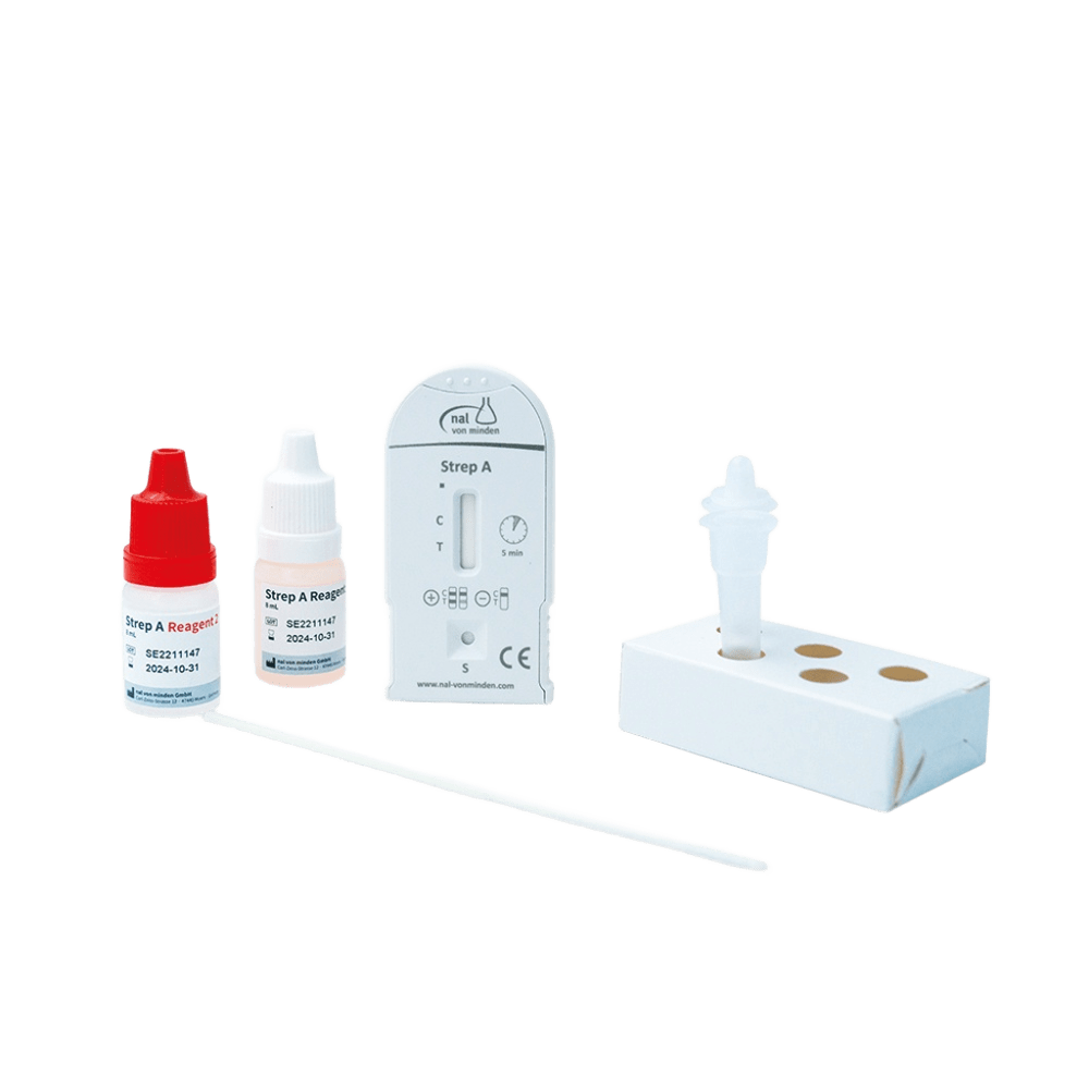 Test rápido inmunocromatográfico en cassette para la detección cualitativa de antígenos de Streptococcus del grupo A en exudado faríngeo. Proporciona resultados fiables en 5 minutos, sensibilidad de 1,5 x 10⁵ organismos/muestra, incluye hisopos estériles, tubos de extracción, reactivos y control positivo. Uso profesional, ideal para diagnóstico precoz de faringitis, amigdalitis y escarlatina. Caja de 20 unidades, CE certificado