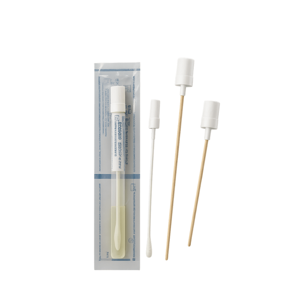 Escobillón con Medio Stuart Estéril (Poliestireno + Viscosa) Escobillón estéril con medio de transporte Stuart, ideal para la recolección y conservación de muestras bacteriológicas. Mango de poliestireno y cabeza de viscosa. Uso profesional.