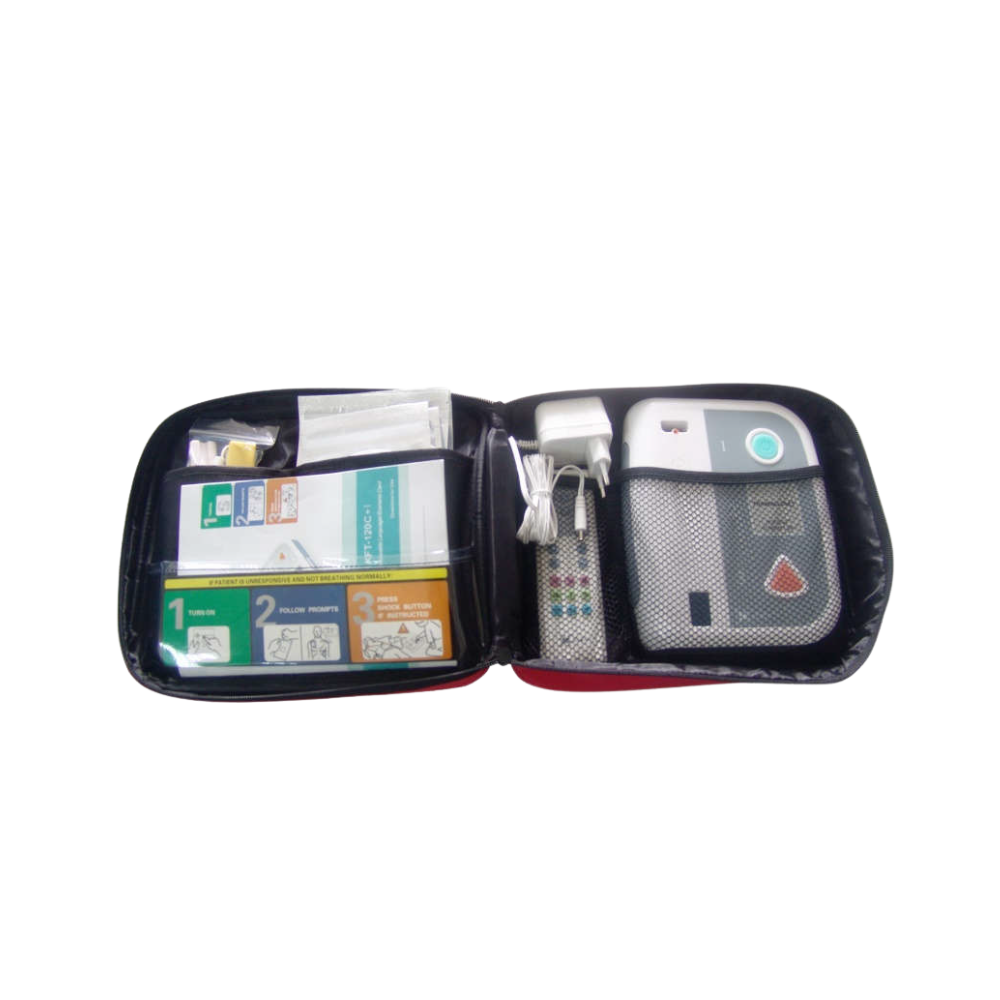 DEA TRAINER 120C+ – Simulador de desfibrilador con escenarios realistas y multilenguaje Entrenador DEA con 10 escenarios de paro cardíaco, ideal para la enseñanza en reanimación. Incluye mando, parches adultos/pediátricos, bolsa de transporte y accesorios.