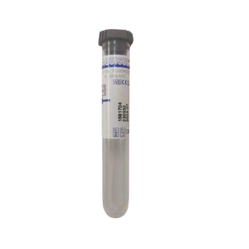 Tubo Aquisel K.Fluor + Oxalato. Tubo para extracción de sangre con aditivo Fluoruro Sódico + Oxalato Potásico (FX), color gris oscuro, con capacidad de 4 mL.