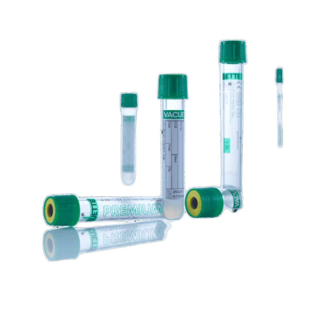 VACUETTE® Heparina de Litio y Gel – Tubo para obtención de plasma con separación eficiente Tubo con anticoagulante y gel separador, ideal para análisis bioquímicos rápidos en pacientes bajo terapia anticoagulante.