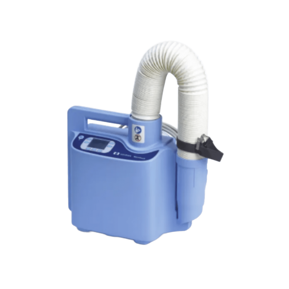 Warm Touch™ – Sistema Térmico por Convección para el Control de la Temperatura Corporal Warm Touch™ es un sistema térmico por convección, compuesto por una unidad térmica electrónica y una manta ligera, diseñado para prevenir o tratar la hipotermia y mantener la normotermia en pacientes adultos o pediátricos en entornos clínicos. El aire caliente es suministrado por un tubo flexible desde la unidad hasta la manta, que lo distribuye uniformemente mediante múltiples microorificios, garantizando una cobertura eficaz del cuerpo del paciente. Características y especificaciones: • Varios ajustes de temperatura: permiten personalizar el tratamiento según las necesidades clínicas. • Modo Rápido: proporciona aire a 47 °C durante 45 minutos para un calentamiento acelerado, luego desciende automáticamente a 45 °C. • Filtro HEPA integrado: retiene al menos el 99,97 % de partículas ≥ 0,3 µm, asegurando aire limpio al paciente. • Protección térmica automática: apaga el sistema y activa una alarma si la temperatura se desvía del rango seguro. • Montaje versátil: puede utilizarse de forma independiente o instalarse en soporte IV, cama o carro de transporte opcional. • Carro con ruedas bloqueables (opcional): facilita el traslado seguro de la unidad térmica durante su uso clínico. .