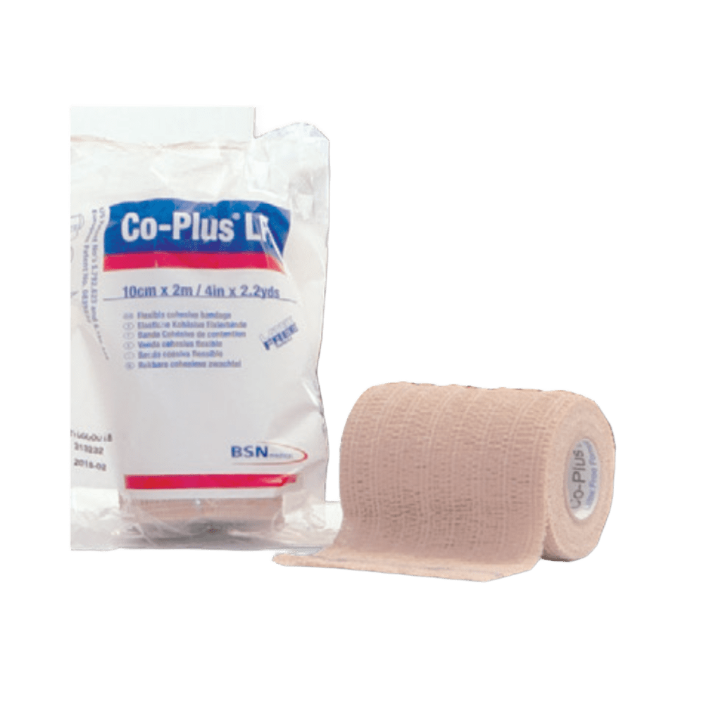 Venda elástica cohesiva sin látex Co-Plus® LF – compresión eficaz, sin irritaciones Indicada para proporcionar soporte y compresión en lesiones de tejidos blandos, prevención de lesiones deportivas y tratamiento de úlceras venosas como parte de un sistema de vendaje multicapa. Características y beneficios: • Compresión constante y soporte duradero • No se encoje, mantiene su forma original • Alta porosidad, permite la transpiración y reduce el riesgo de maceración • Rasgable con la mano en ambas direcciones, aplicación rápida sin tijeras • Autoadhesiva, no requiere cintas ni clips • Fina y ligera, permite un vendaje discreto y cómodo • No se adhiere a la piel, vello o ropa