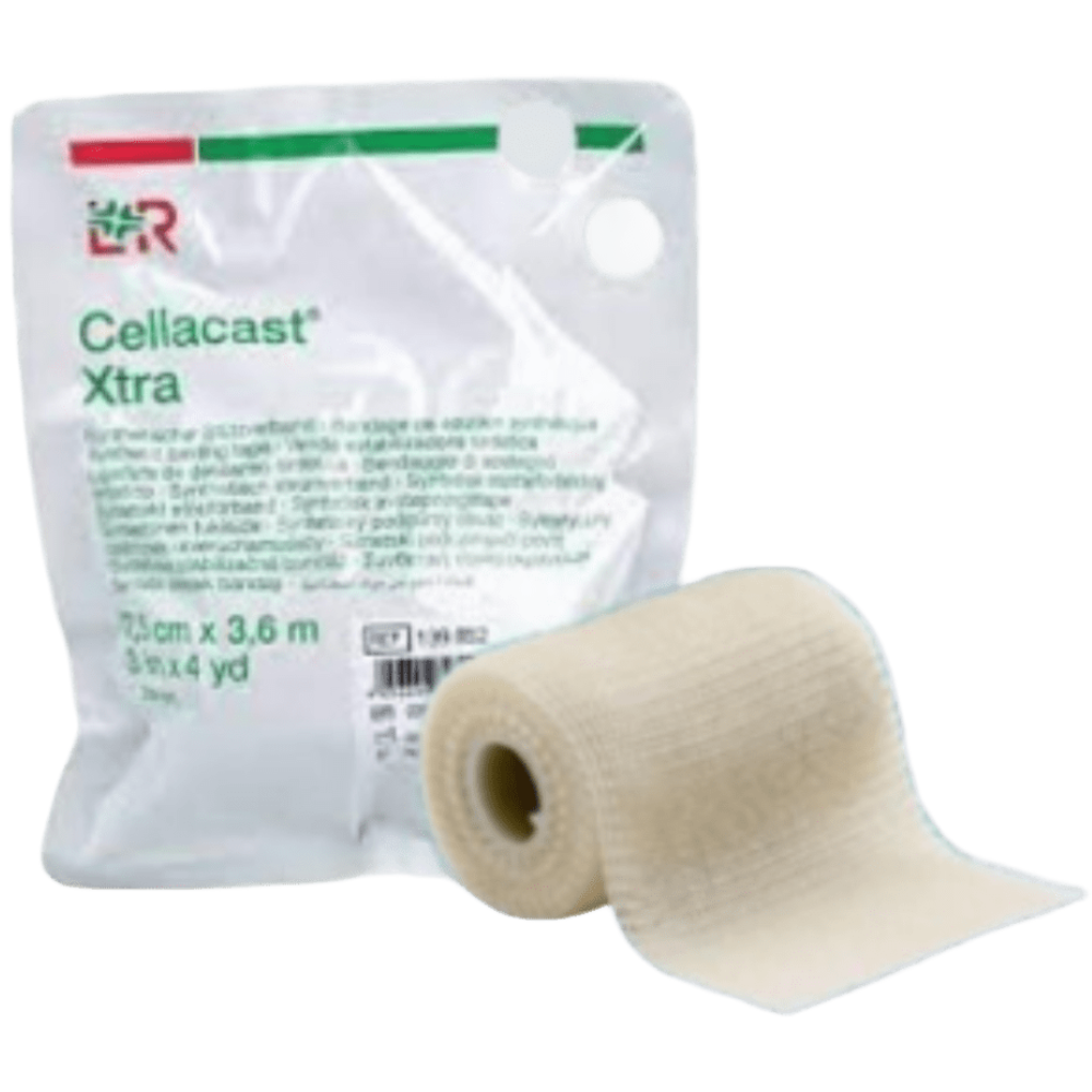 Cellacast Xtra es una venda de inmovilización de alto rendimiento, compuesta por tejido de fibra de vidrio impregnado en una resina de poliuretano que no se adhiere a los guantes, lo que facilita una aplicación limpia y sencilla. Está diseñada para proporcionar un molde rígido, estable y de bajo peso, ideal para tratamientos ortopédicos que requieren una fijación precisa y duradera. Gracias a su estructura transpirable y a su resistencia al agua una vez fraguada, ofrece comodidad al paciente y evita la maceración de la piel. Su tiempo de fraguado es muy rápido (2,5 a 5 minutos), permitiendo una inmovilización eficaz en pocos pasos, y alcanza su resistencia completa en tan solo 30 minutos. Además, es radiotransparente, por lo que permite la evaluación por rayos X sin necesidad de retirarla. Está indicada para la inmovilización de fracturas, recuperación postquirúrgica, correcciones ortopédicas y tratamiento de enfermedades óseas y articulares. Características del producto: Composición: Tejido de fibra de vidrio Resina de poliuretano no adherente Núcleo de polipropileno Envases disponibles: Bolsa tubular (unidad) Estuche individual con instrucciones Caja de cartón corrugado para presentación de venta Propiedades destacadas: Fraguado rápido: 2,5 – 5 minutos Ligera, rígida y resistente Permeable al aire (previene maceraciones) Resistente al agua después del fraguado Radiotransparente (compatible con rayos X) No se adhiere a guantes Fácil de moldear Indicaciones: Inmovilización de fracturas Postoperatorio de cirugía ortopédica Correcciones articulares y óseas Enfermedades reumáticas o traumatológicas Contraindicaciones: Hipersensibilidad a alguno de sus componentes