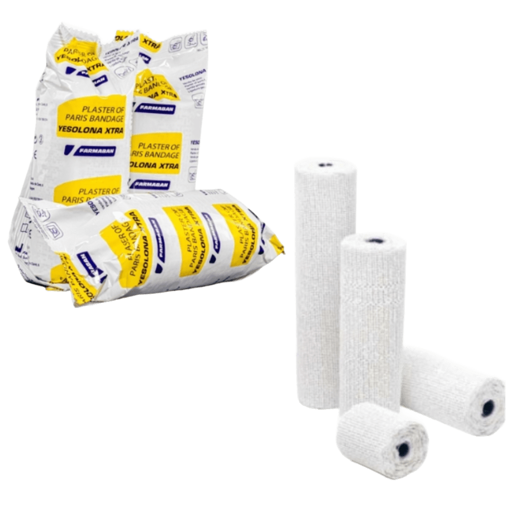 Venda yeso YESOLONA XTRA- Caja. Yesolona Xtra es una venda de escayola de alta calidad, compuesta por gasa de algodón 100% y yeso de rápida absorción. Ideal para inmovilizaciones precisas, seguras y cómodas, con fraguado rápido y excelente moldeabilidad.