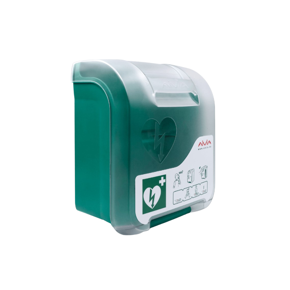 AIVIA IN – Vitrina interior con alarma acústica y luminosa para DEA Diseño compacto y resistente para interior, compatible con todos los desfibriladores. Incluye alarma visual y sonora con autonomía de 3 años. Instalación sin herramientas.