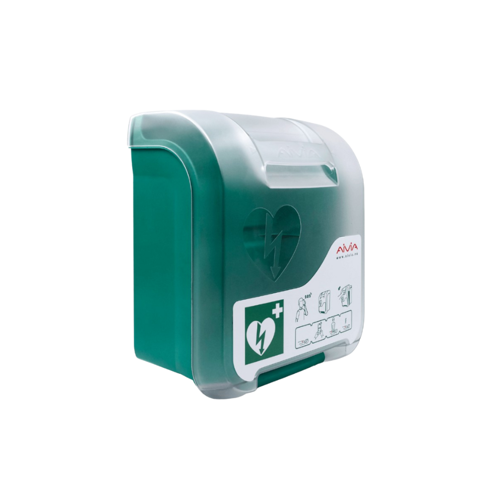 AIVIA – Vitrina cerrada con alarma luminosa para desfibrilador AED Diseño compacto y resistente, compatible con todos los DEA. Incluye alarma visual y sonora con 3 años de autonomía. Fácil instalación sin herramientas.